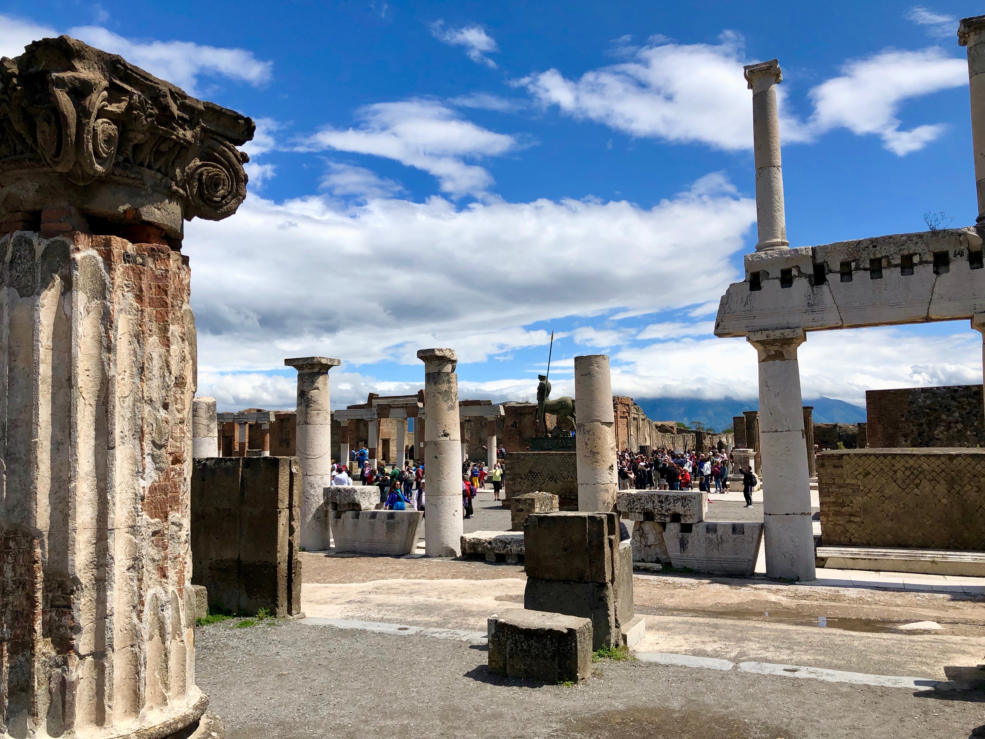During our visit to Rome we took an overnight trip to Pompeii. How awesome it was to see the quaint little City, experience some of the cuisine and ultimately visit the ruins of the ancient City. It is difficult to even imagine a City that was sophisticated and vibrant one moment and covered in ash the next. To see the ruins and walk on streets laid by ancient Romans was a thrill that is hard to describe. In places one can still see ruts made by their chariots. Seeing the ancient ruins of Europe was for me, a dream come true. What a wonderful experience. While I may forget insignificant details of this trip, I will never forget the feelings of wonder and awe, and the beauty of the scenery.